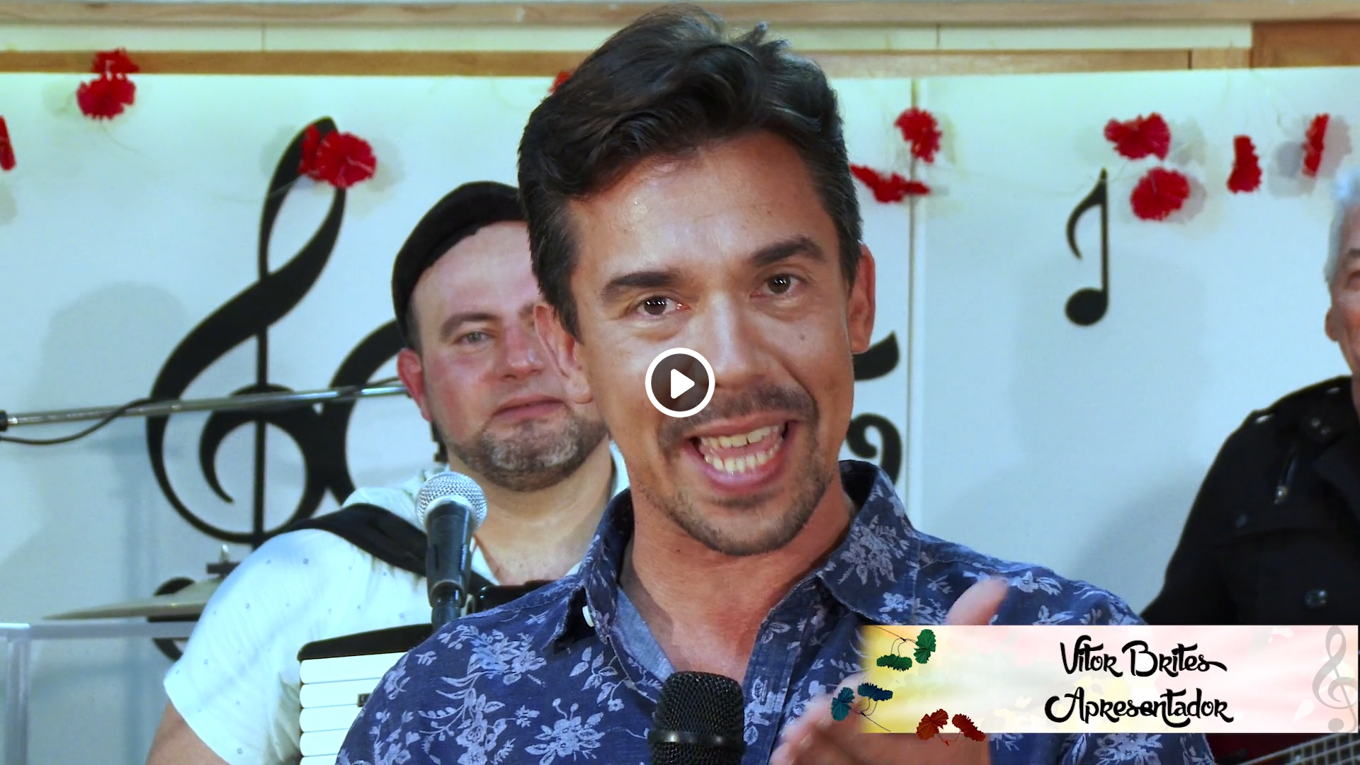 VÍtor Brites apresentador do canal naminhaterra TV conversa com os músicos do grupo - FADO SALÃO - Música na Praça | SANTA CRUZ